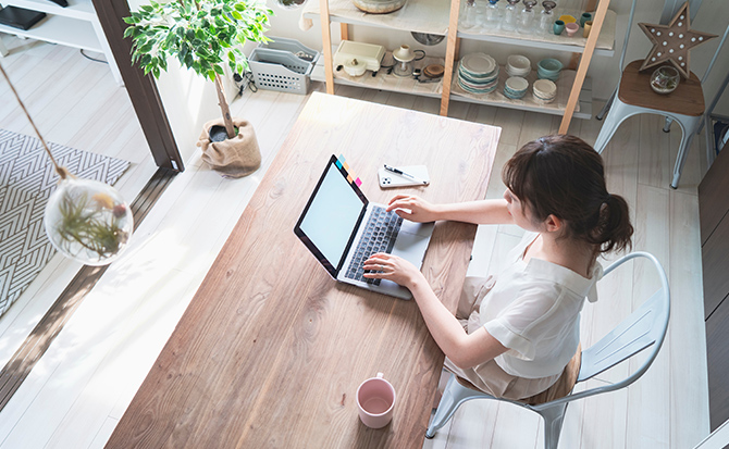 当社では、在宅勤務制度を2020年に導入しました。出社と在宅勤務を組み合わせることで通勤や長時間労働などによる心身の負担を減らし、集中しやすさや異なる部署の社員との交流、余暇時間の活用などによるワークライフバランスの是正にも繋がるなど、健康に働くための仕組みとして運用しています。