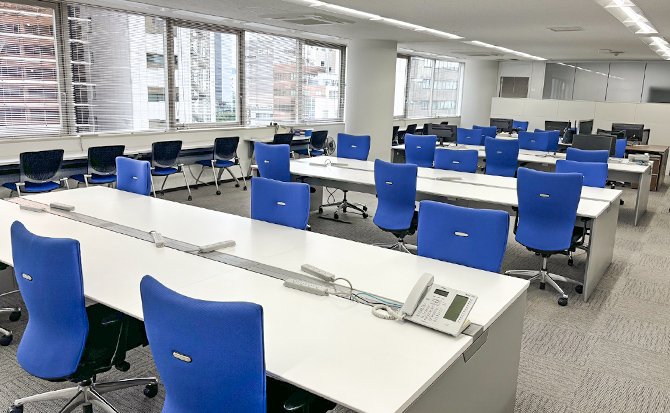 東京本部では、固定席を設けず好きな席で働けるフリーアドレスを実施しています。席を自由化することにより、他部署や立場を超えた交流や、省スペース化・整理整頓・ペーパレス化を促進し、働きやすい職場環境づくりを進めています。